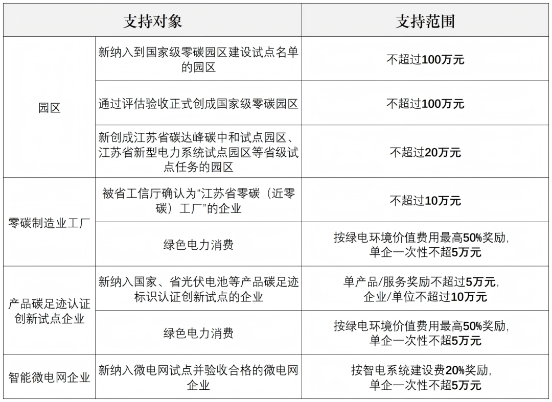 8月20日,盐城市大丰区人民政府发布《盐城市大丰区零碳试点奖补政策实施方案(试行)(征求意见稿)》。《方案》明确奖补对象需为纳入国家、省零碳试点的产业园区、零碳制造业工厂、产品碳足迹认证创新试点企业和“数智化”微电网企业。具体支持范围如下: