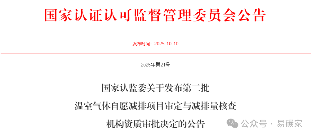 根据《中华人民共和国认证认可条例》《温室气体自愿减排交易管理办法(试行)》《认证机构管理办法》的相关规定,经商生态环境部,现发布第二批温室气体自愿减排项目审定与减排量核查机构资质审批决定。