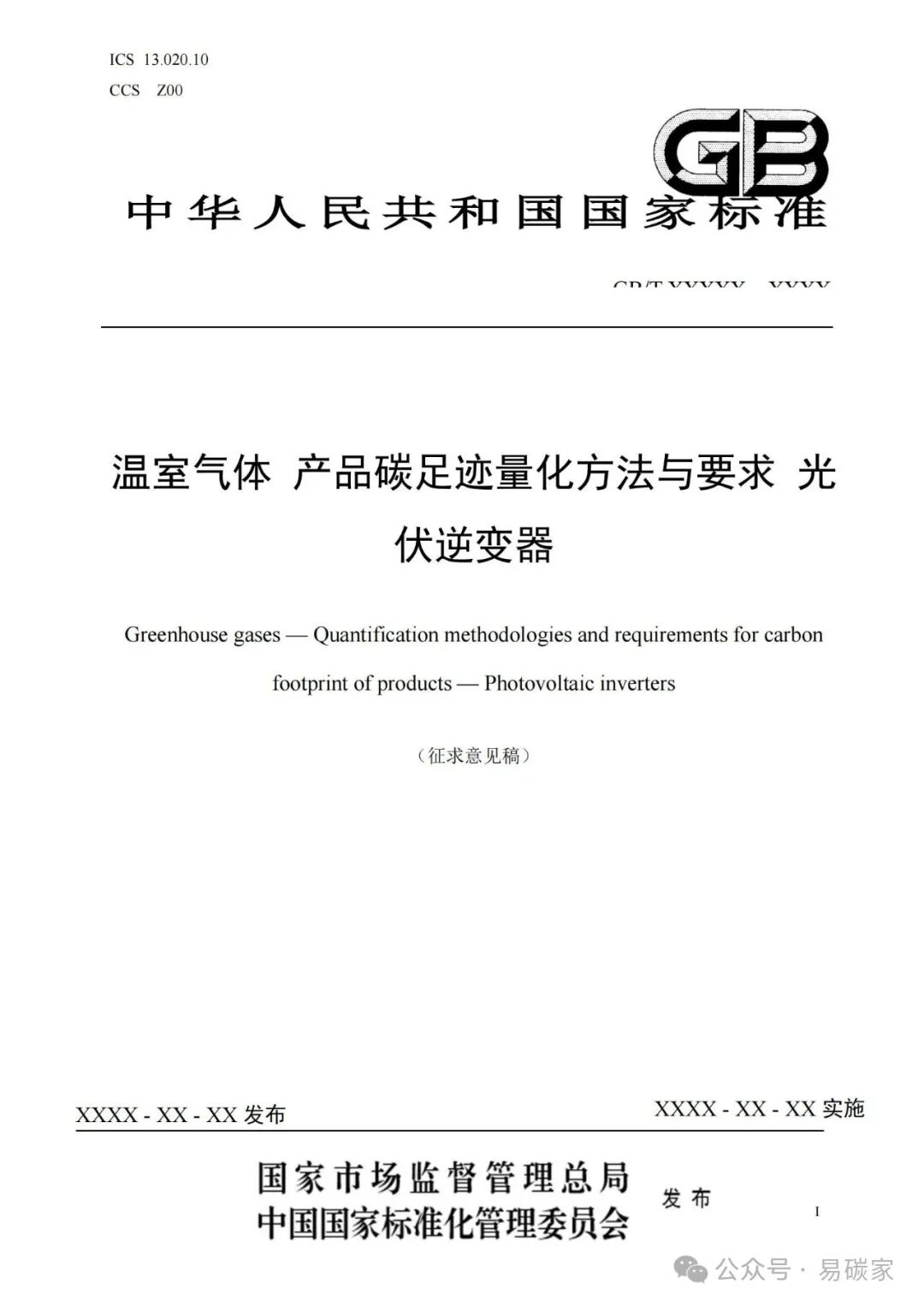 1. 《温室气体 产品碳足迹量化方法与要求 光伏逆变器》(征求意见稿)材料