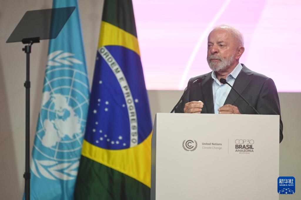 《公约》秘书处执行秘书西蒙·斯蒂尔在开幕式讲话中指出,应对气候危机仍然征途漫漫,在减少排放和增强韧性这两方面,全球必须以更快速度奋力前进。他同时强调,各方必须就落实包容、公正转型的具体步骤达成共识,将愿景转化为行动。11月10日,巴西总统卢拉在巴西北部城市贝伦举行的《联合国气候变化框架公约》第三十次缔约方大会(COP30)开幕式上发表讲话。新华社发(卢西奥·塔沃拉 摄)