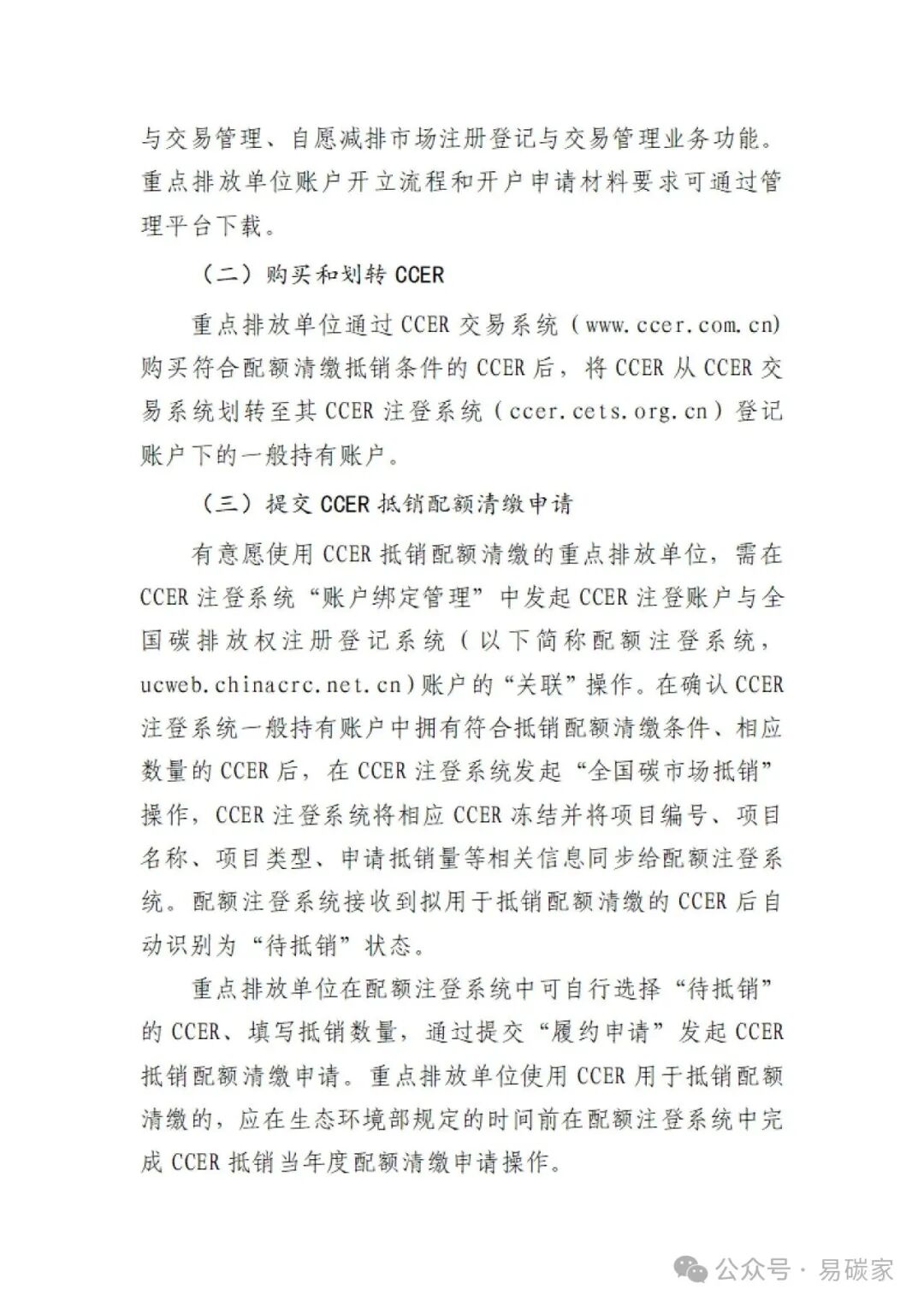 附件:1.《全国碳排放权交易市场重点排放单位使用CCER抵销配额清缴操作指南》