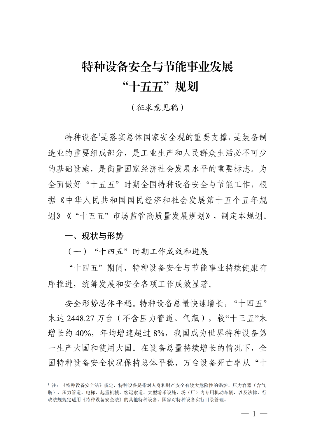 市场监管总局特种设备局关于《特种设备安全与节能事业发展“十五五”规划(征求意见稿)》公开征求意见的公告
