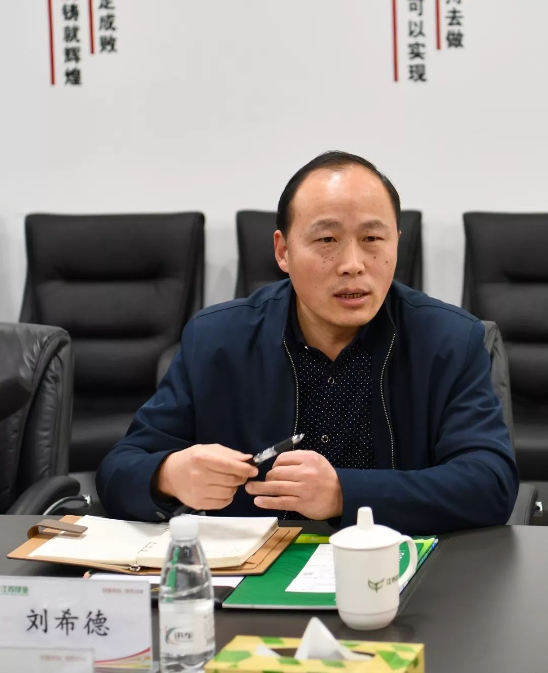 江苏绿金委主任,中研绿色金融研究院董事长兼院长束兰根为刘希德书记一行介绍公司情况